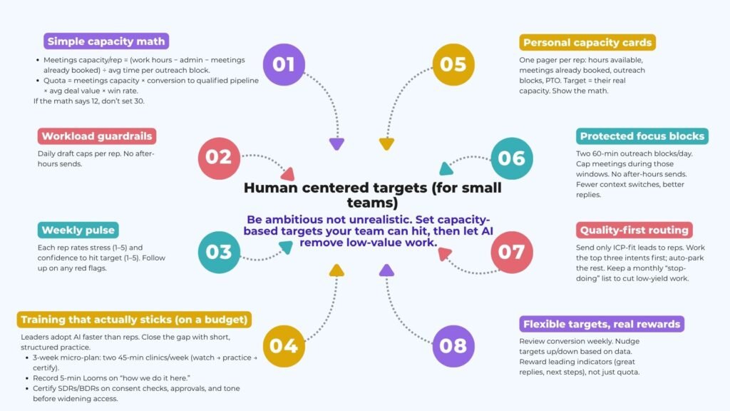 Dashboards don’t close deals. People do! backed by a clean pipeline and goals that make sense. Reading inside, you’ll have a better picture of how to deploy governed AI sales playbooks across HubSpot, Salesforce, or Dynamics 365, set capacity-based targets, coach SDRs/BDRs, and train without the drama. The payoff: steady, qualified pipeline.